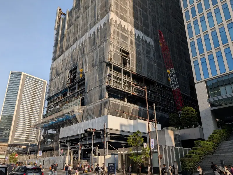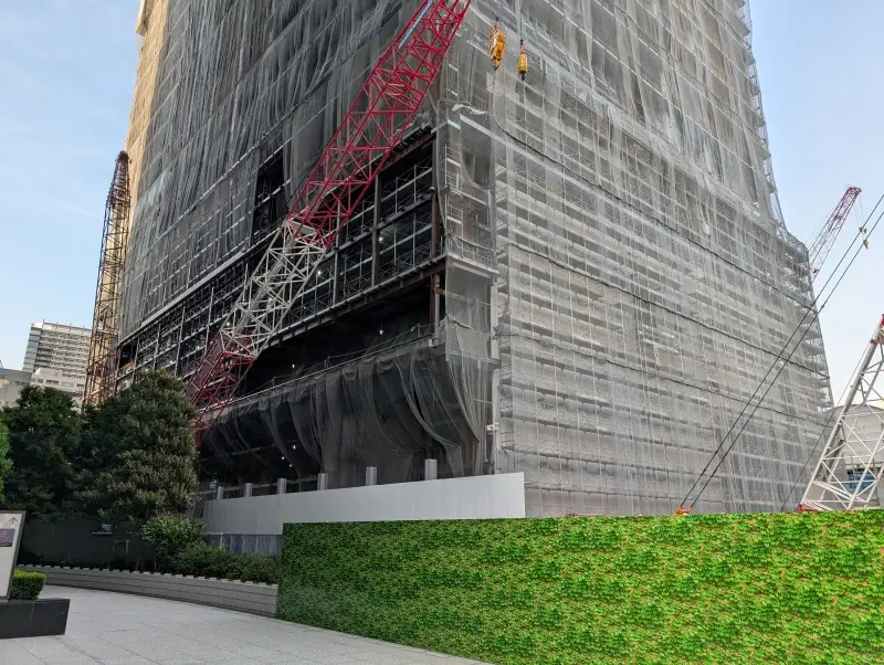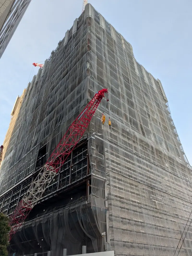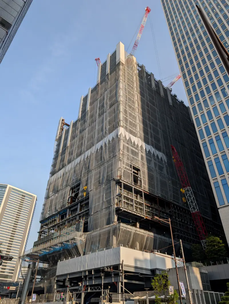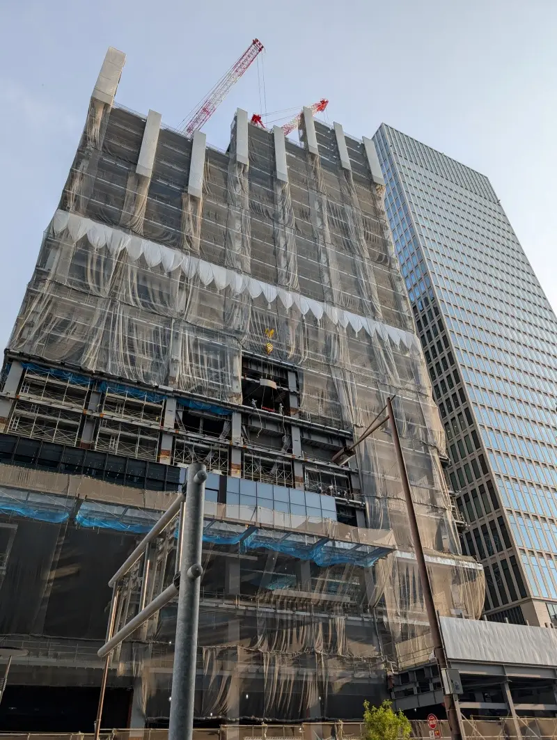 「日本生命浜松町クレアタワー」の南側から、施工中の建物を見た様子です。