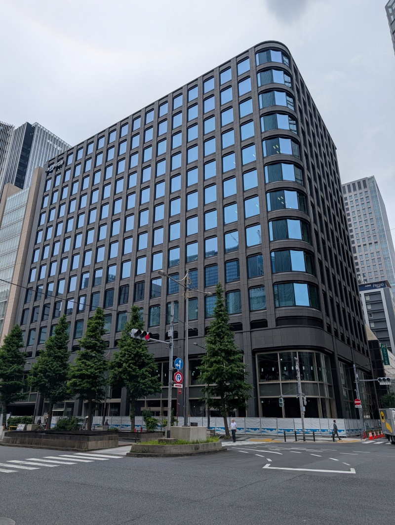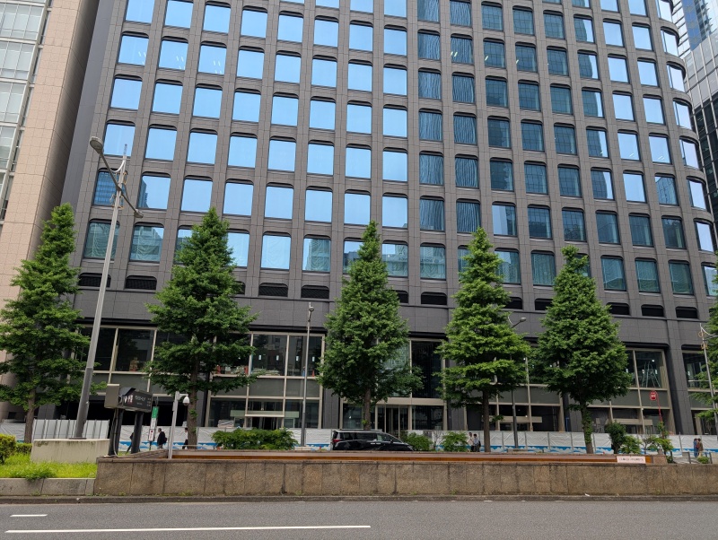 八重洲通り沿いに東側に進み、建物の低層階を見た様子です。