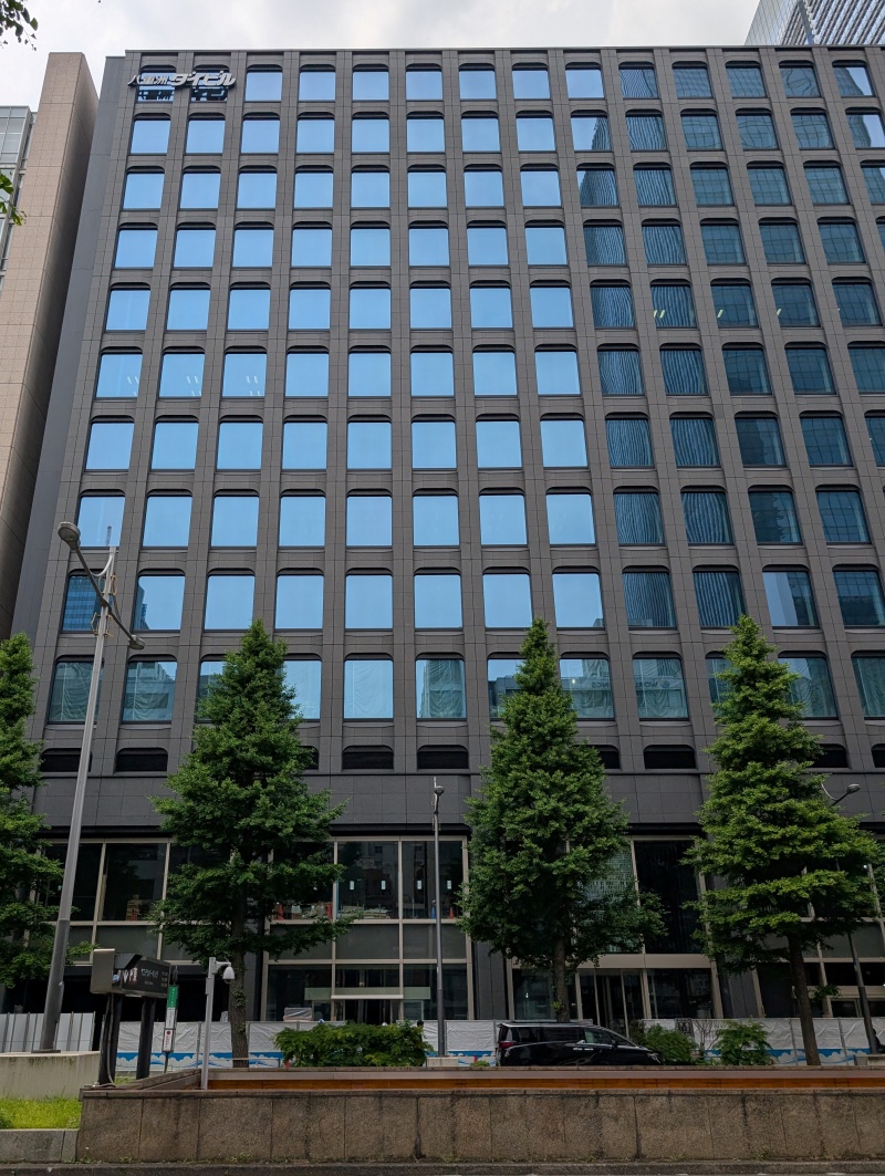 カメラを縦にして建物を撮影しました。建物の最高階には、八重洲ダイビルの名称が掲示されていました。