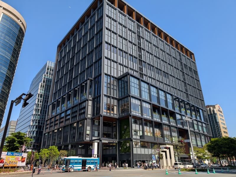 南東側から敷地を見た様子です。こちらの敷地のお隣の、静岡新聞の建物がユニークで、私の好きな建物の一つです。