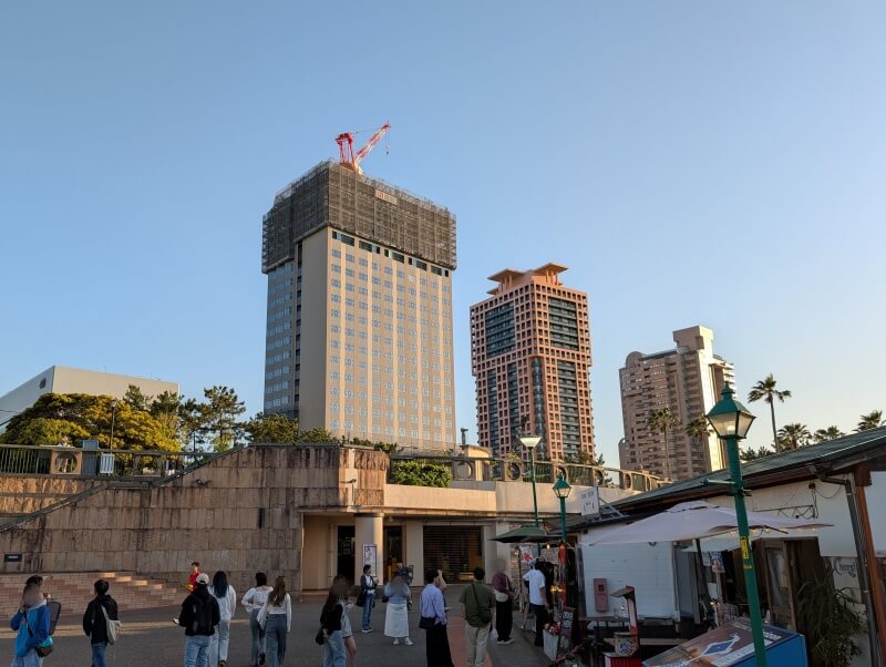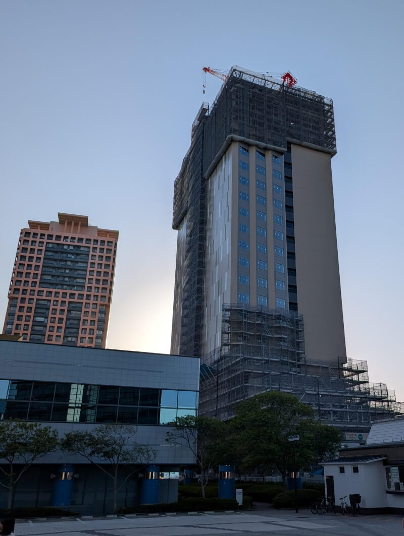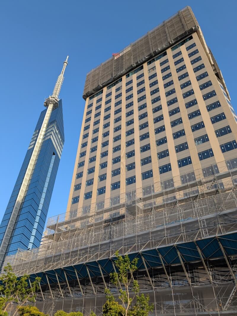 福岡タワーの傍から、建設中の建物を見た様子です。福岡タワーの展望台に行きたくて、こちらに来たら、超高層ビルの建築現場に出会えました。肝心の、福岡タワーの展望台は1時間待ちだったので、諦めました。