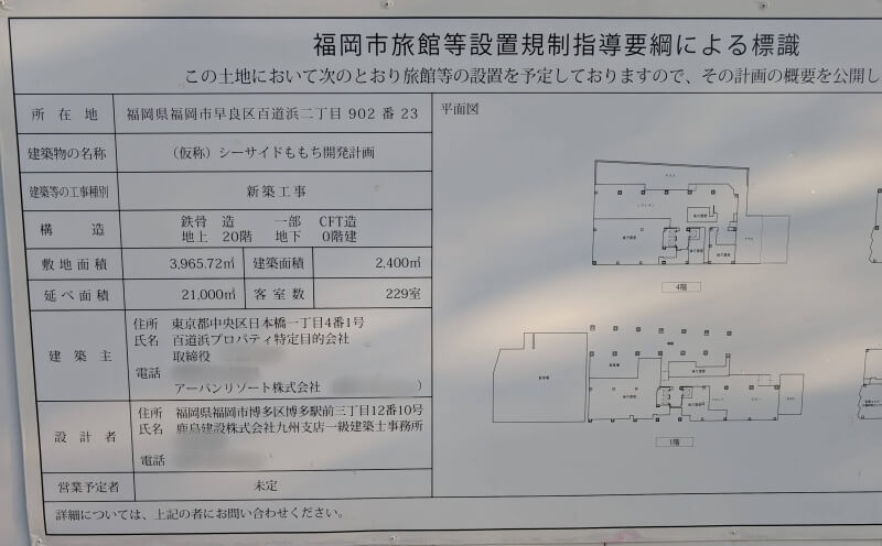 こちらは、20階の「(仮称)シーサイドももち開発計画」で、プリンスホテル系のホテルが、2026年春に開業予定です。全室オーシャンビューになる予定で、お部屋から見た景色が綺麗なのだろうと思います。