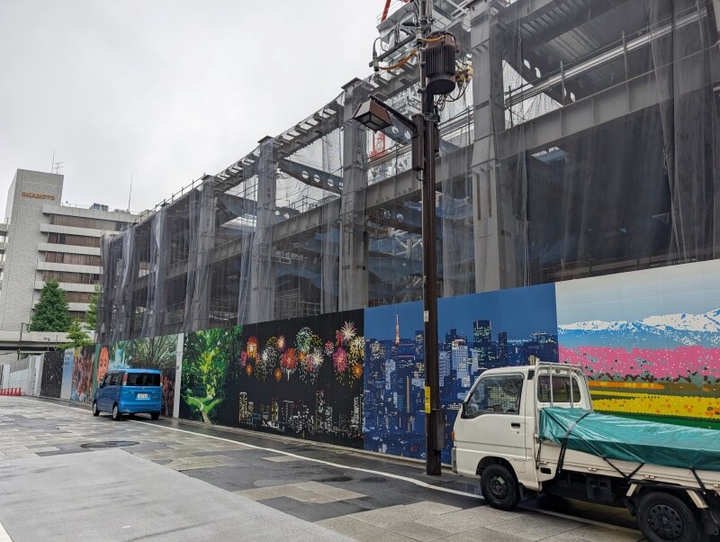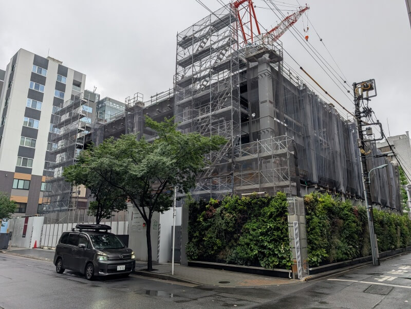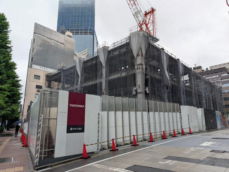 江戸桜通り沿いから、建替え工事の敷地を見た様子です。