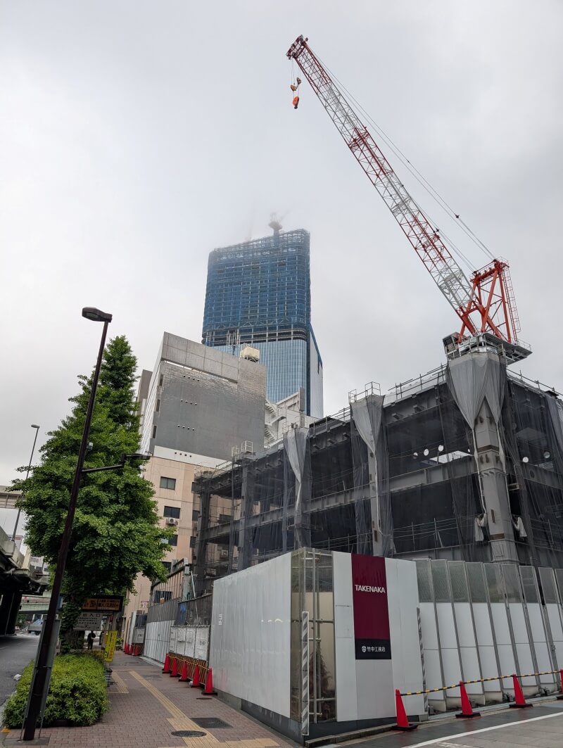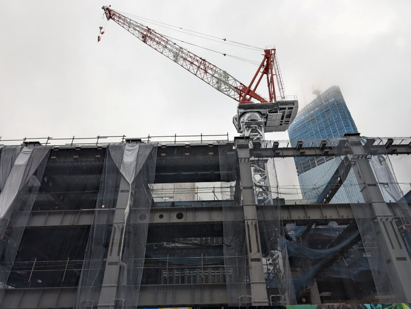 角度を変えて、敷地北側からタワークレーンを見た様子です。奥には、「日本橋一丁目中地区第一種市街地再開発事業」のメインタワー棟が見えていました。