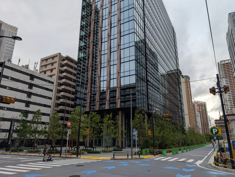 「日本生命浜松町クレアタワー」前付近から、低層階を見た様子です。