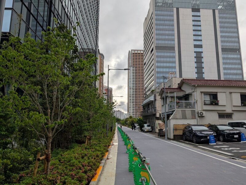 建物北側の車道の様子です。こちらは拡幅されるのかと思っていたのですが、拡幅はされませんでした。