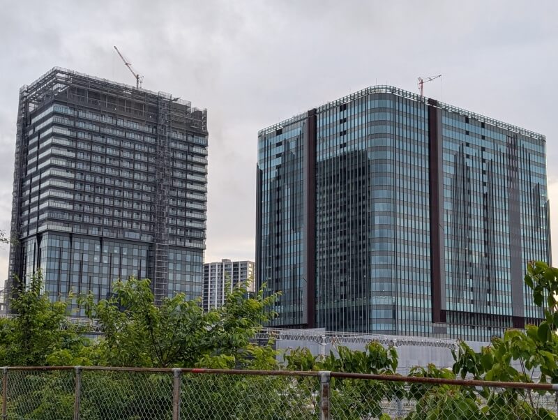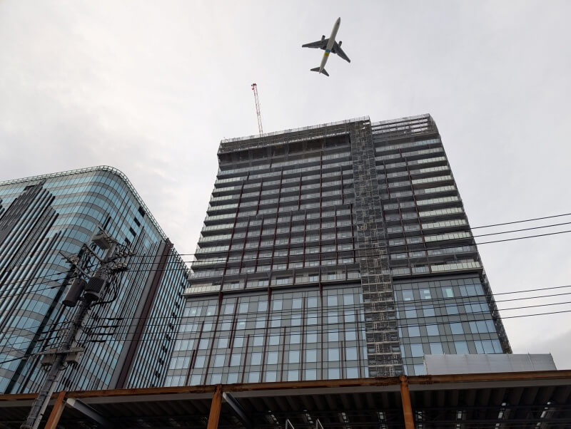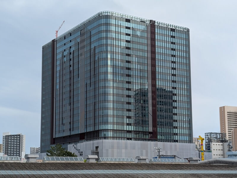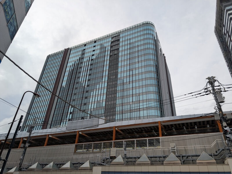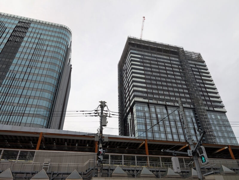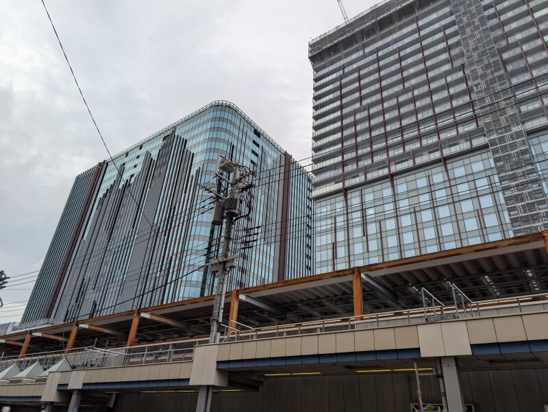 ホテル住宅棟の「OIMACHI TRACKS HOTEL & RESIDENCE TOWER」側を見た様子です。