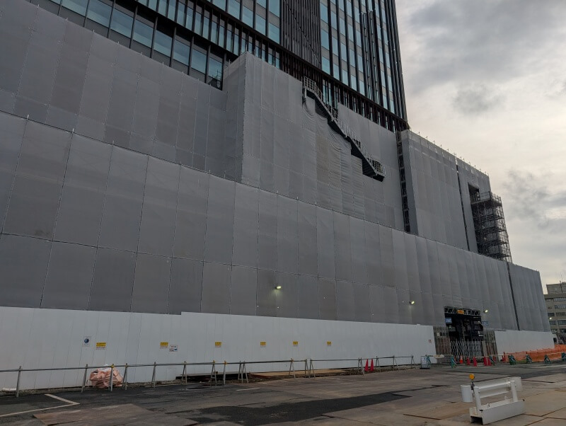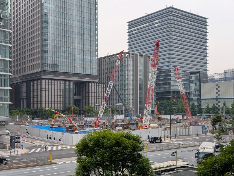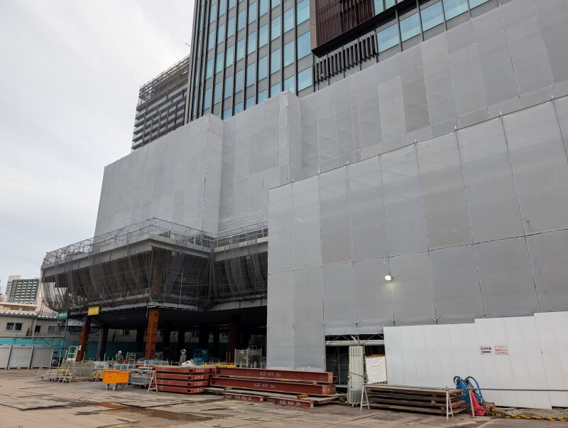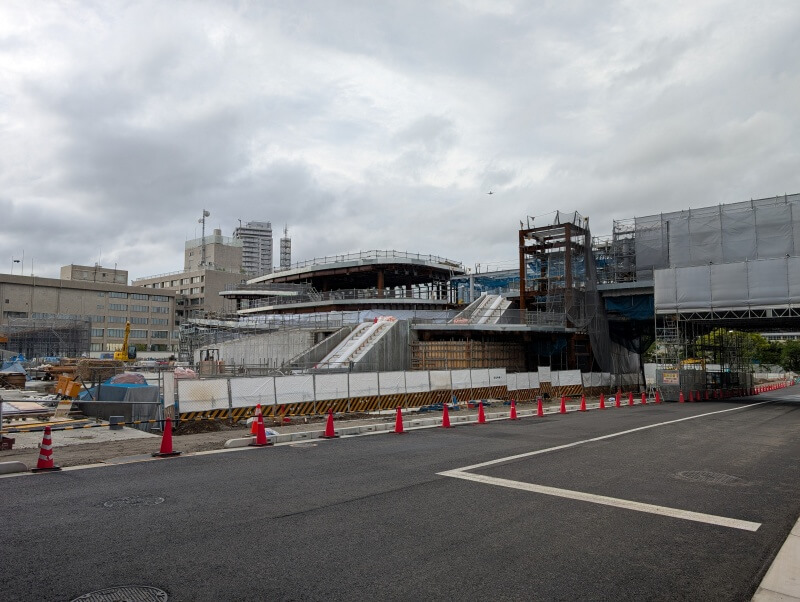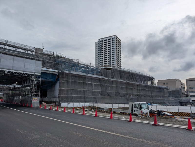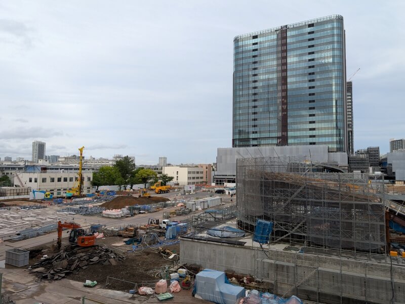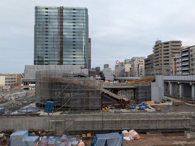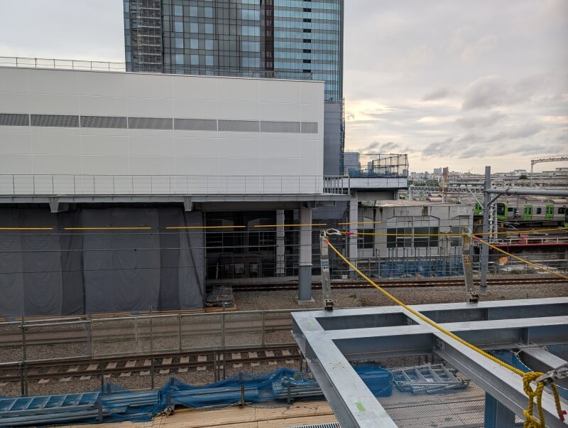 京浜東北線・東海道線の線路沿いから、JR大井町の新改札が出来る北側エリアを見た様子です。