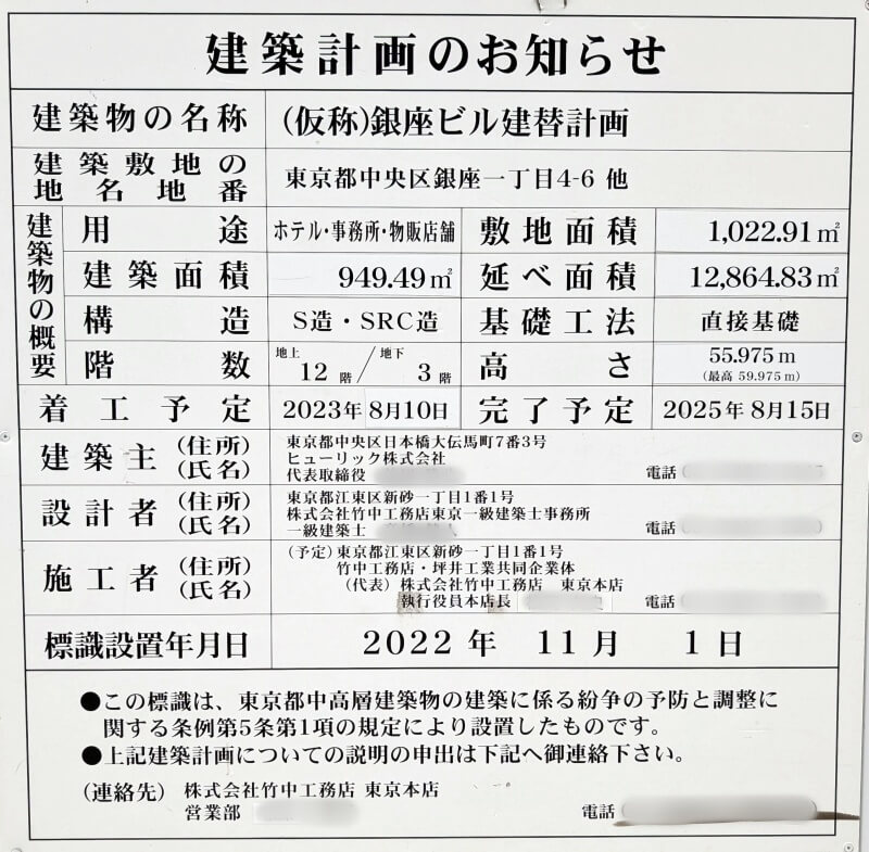 名称:(仮称)銀座ビル建替計画