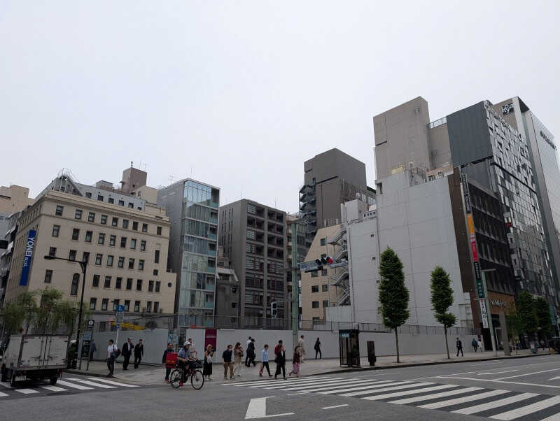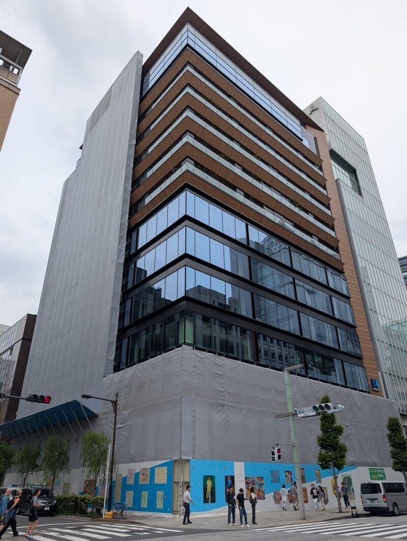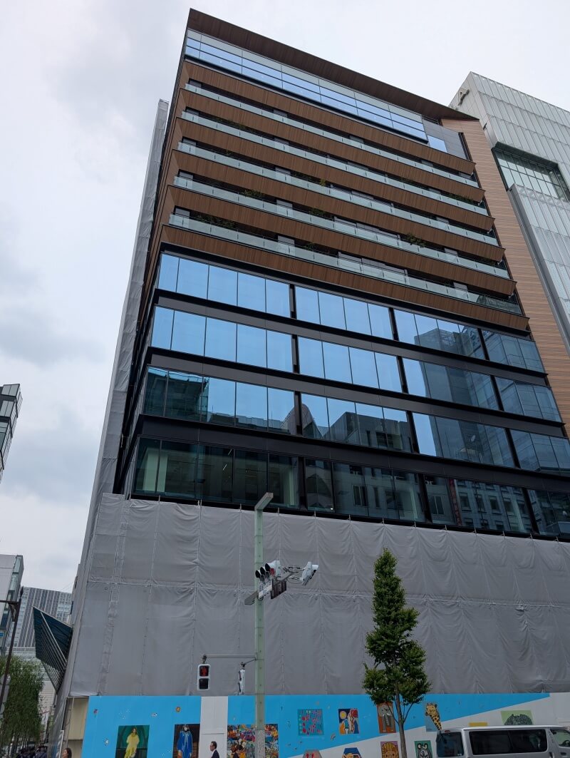 銀座一丁目交差点付近で行われている、12階59m「(仮称)銀座ビル建替計画」の様子です。こちらは躯体が見えてきていました。こちらも木目調が目立つ建物となっていました。