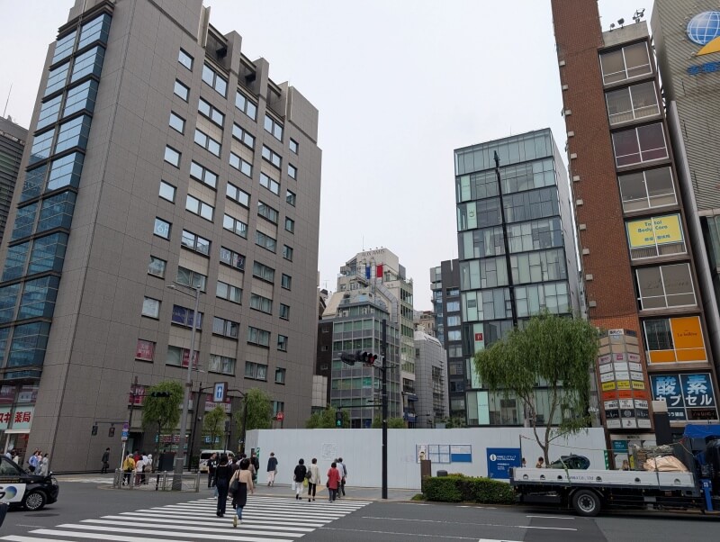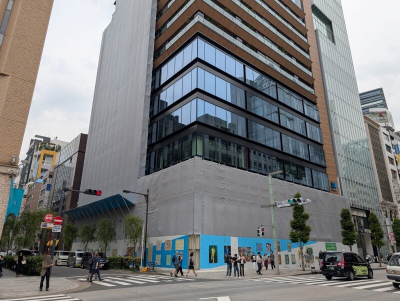 銀座一丁目交差点から、建物低層階を見た様子です。