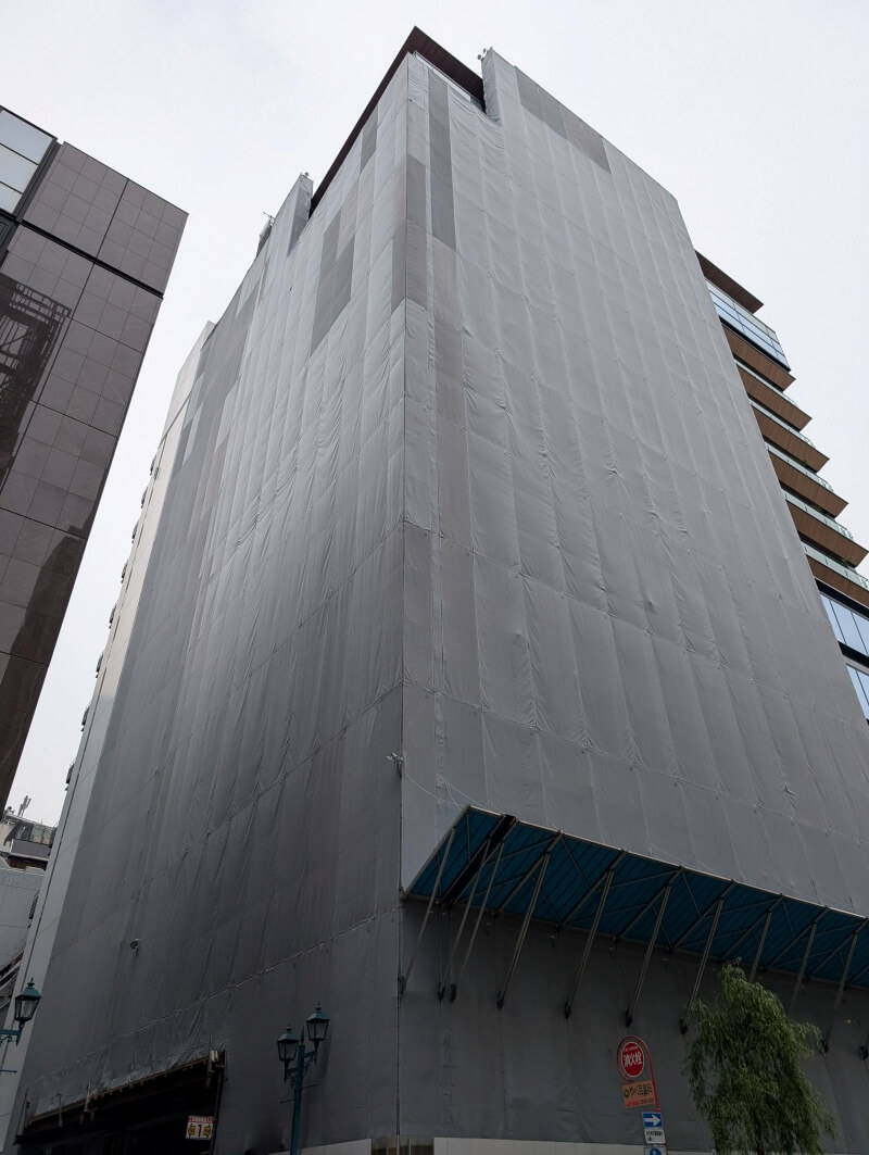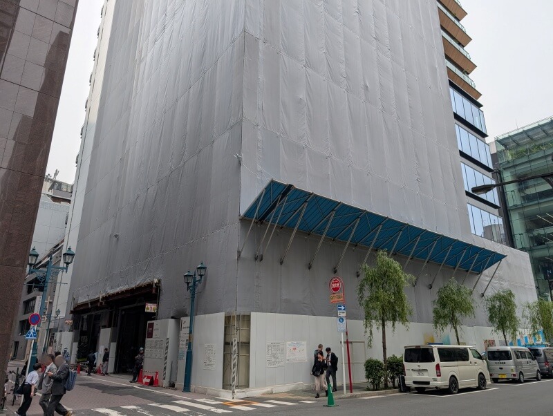 銀座貿易ビル建て替え工事の様子です。こちらは、まだ建築計画のお知らせが掲示されていませんでした。