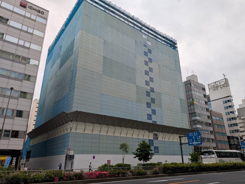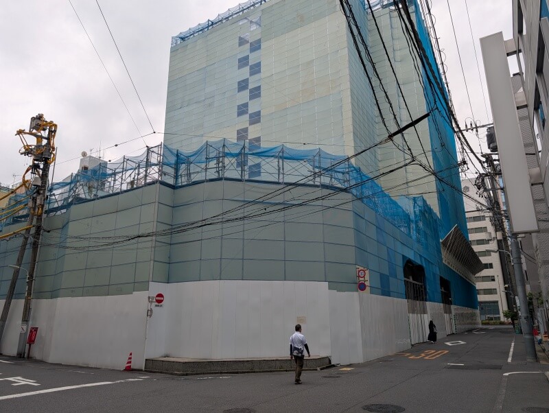 桜田通り沿いから、解体工事中の建物を見た様子です。