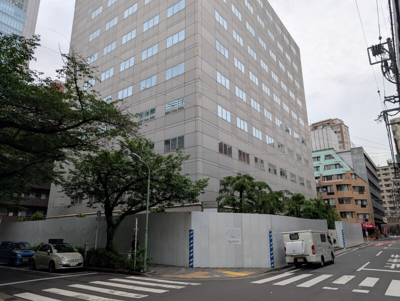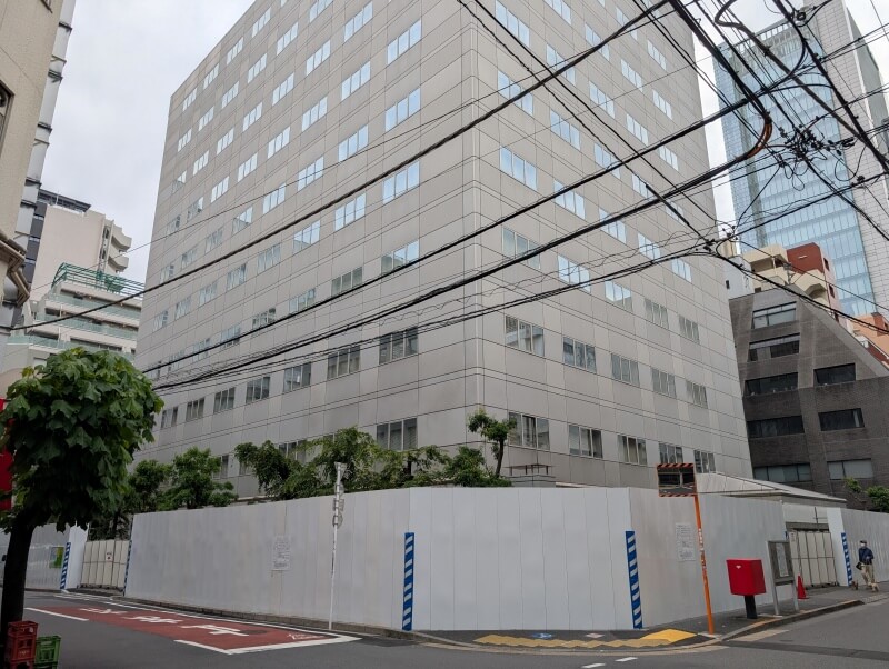 南側から、解体工事中の建物を見た様子です。ストリートビューを見てみたら、こちらには会計ソフトのfreeeがかつて入居していました。