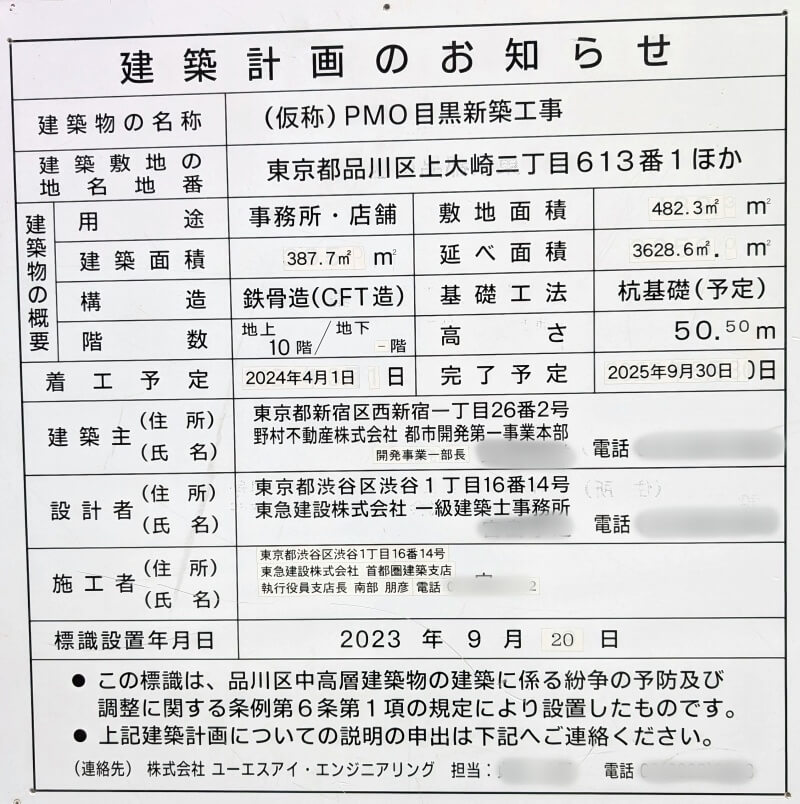 名称:(仮称)PMO目黒新築工事