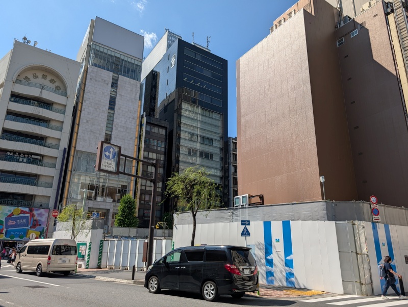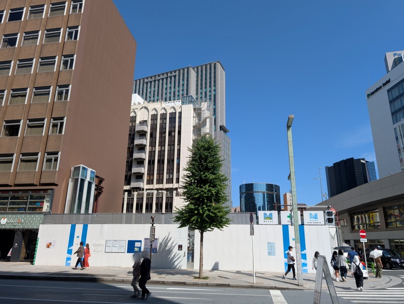 中央通り沿いの北側から、建替え工事中の敷地を見た様子です。