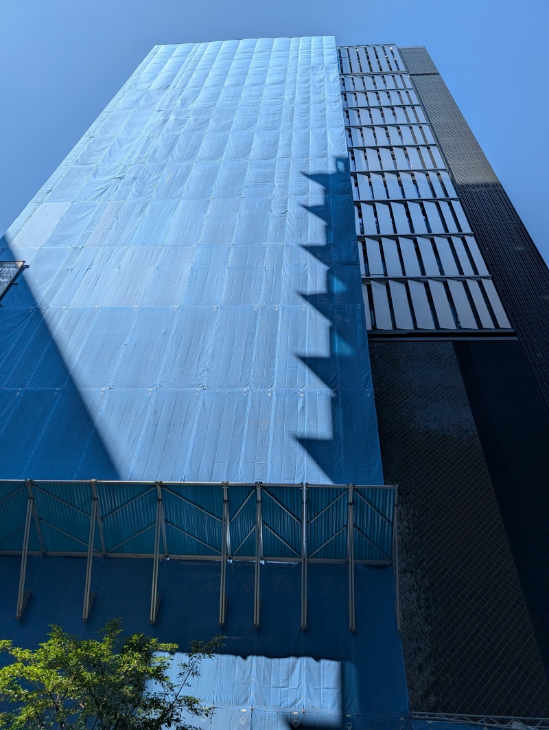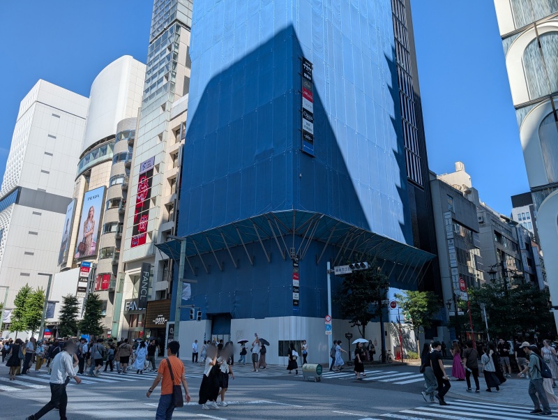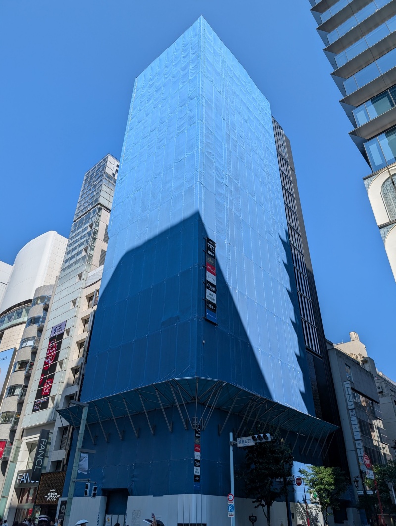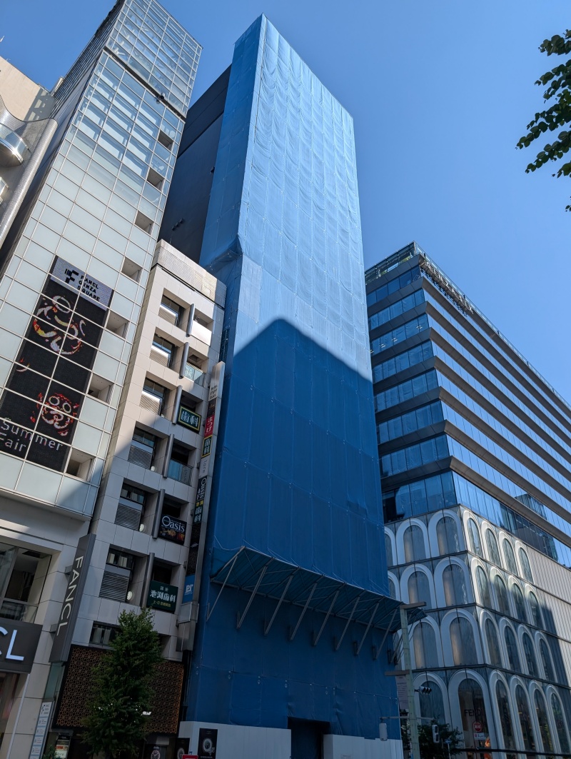 建物南側の、「GINZA SIX」側から見ると、建物東側の躯体の一部がカバーが取れて見えていました。