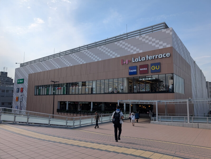 通路を歩いていくと、開業した「ららテラス北綾瀬」が見えていました。