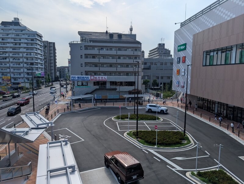1階に降りて、「ららテラス北綾瀬」前の交通広場を見た様子です。