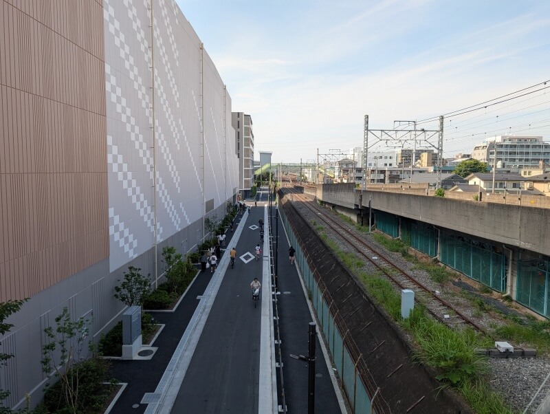 どんな景色が見えるのかと、跨線橋の上から「ららテラス北綾瀬」側を見た様子です。