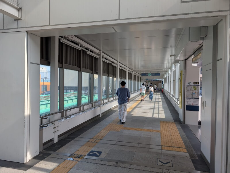 北綾瀬駅から「ららテラス北綾瀬」側を繋ぐ、環状七号線上の通路を見た様子です。
