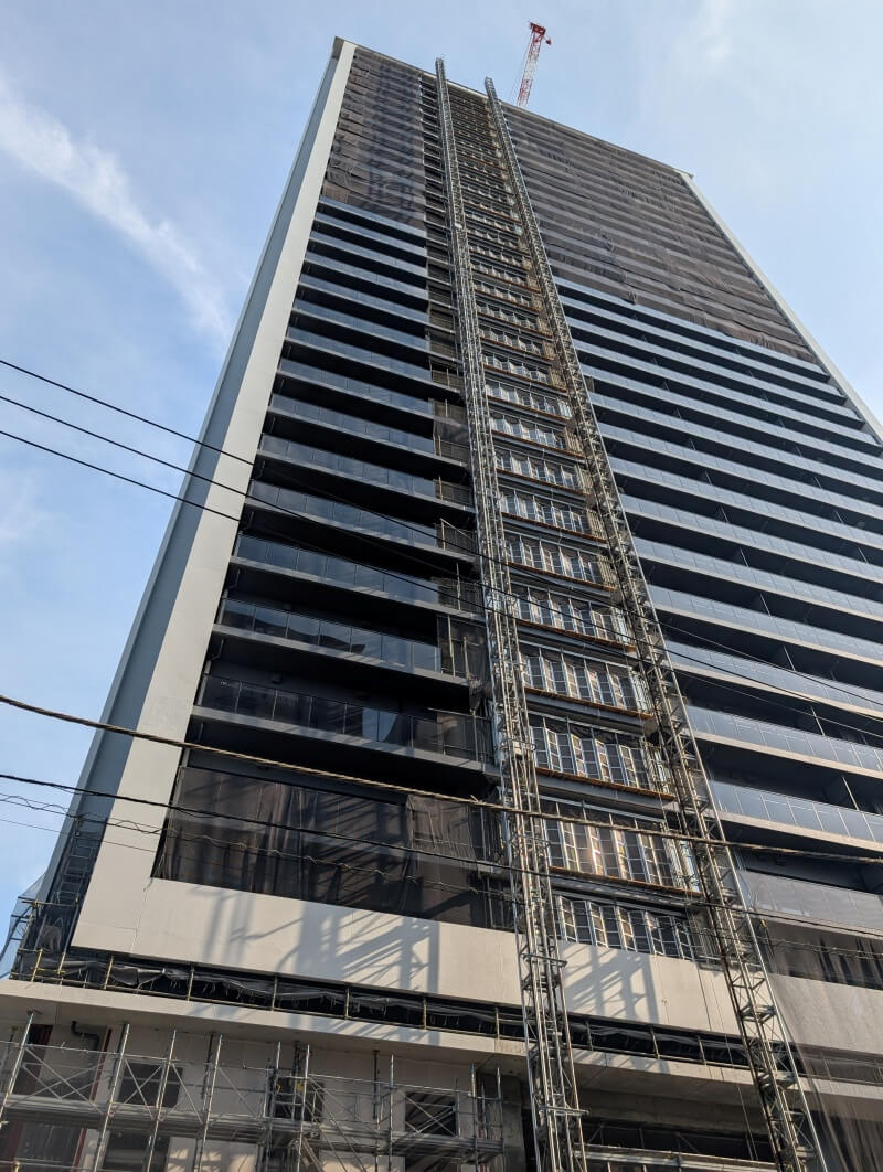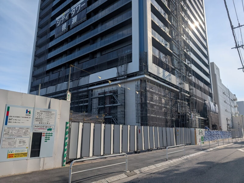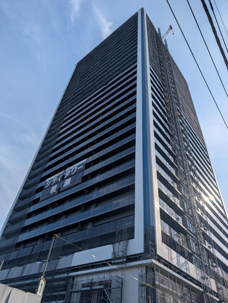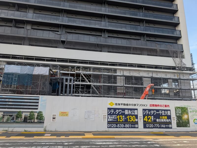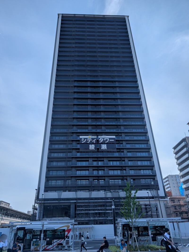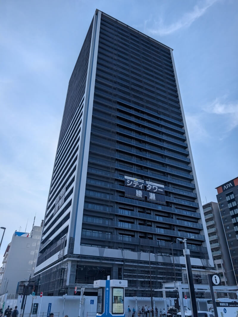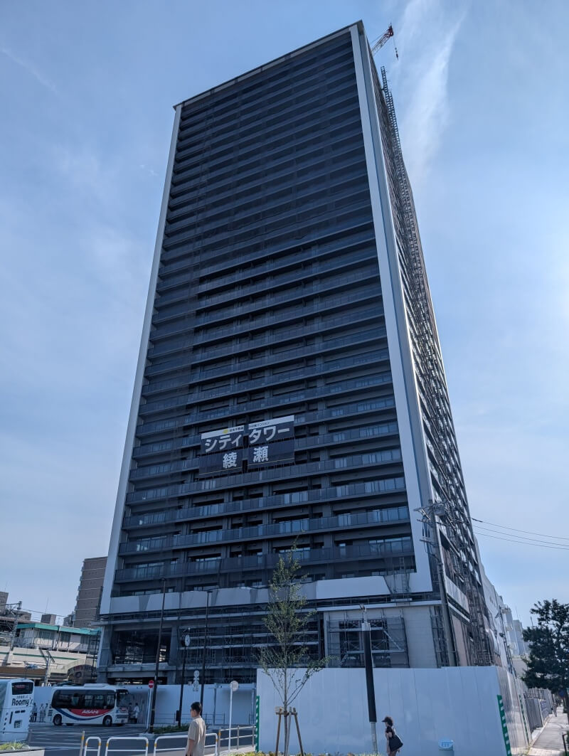 綾瀬駅前で建設中の、32階118m「シティタワー綾瀬」の様子です。建物は上棟してそうでしたが、タワークレーンは残っている状態でした。スカイツリーに行った時に、こちらの建物が見えてたので、気になって見に行ってみました。