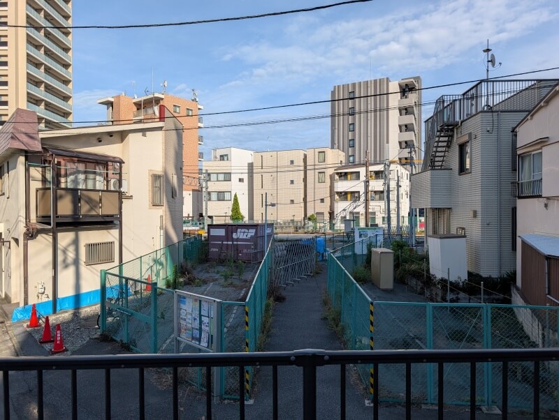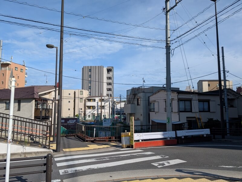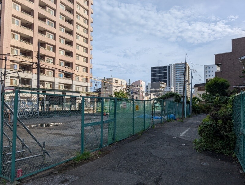 日出通り越しに、東池袋四丁目駅側を見た様子です。東池袋四丁目駅付近の都市計画道路予定地の確保も、前回来た時より進んでいる感じでした。