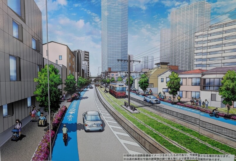 以下、現地委に掲示されていた、整備イメージ図部分だけを載せました。都電荒川線の軌道部分が緑化されていたのが気になりました。