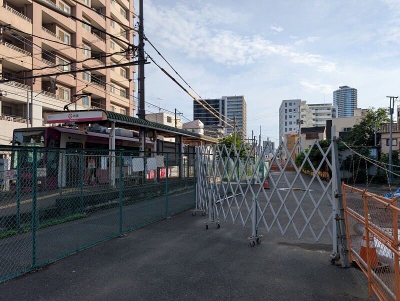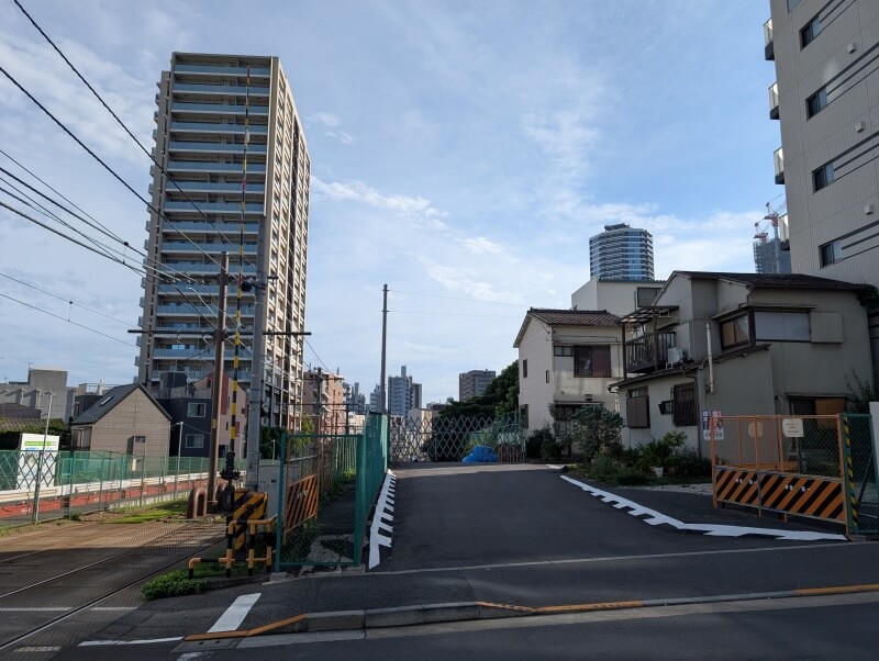 都電荒川線の向原駅に近づいて、都市計画道路補助第81号線の道路予定地を見た様子です。