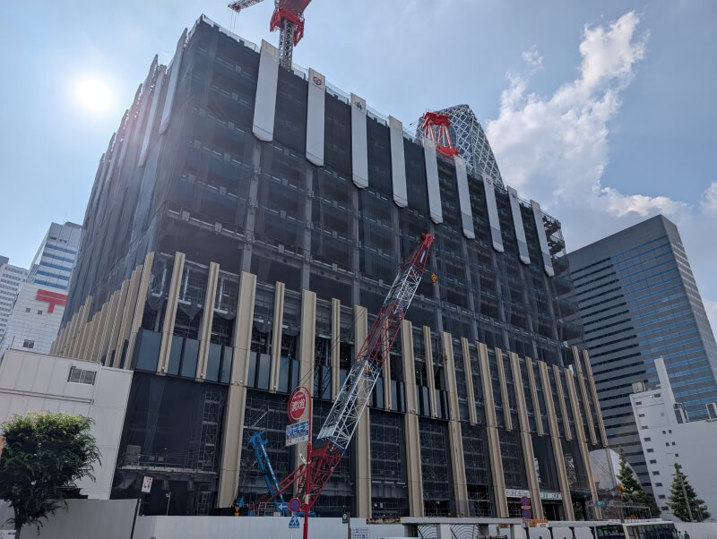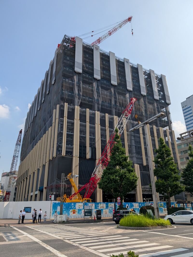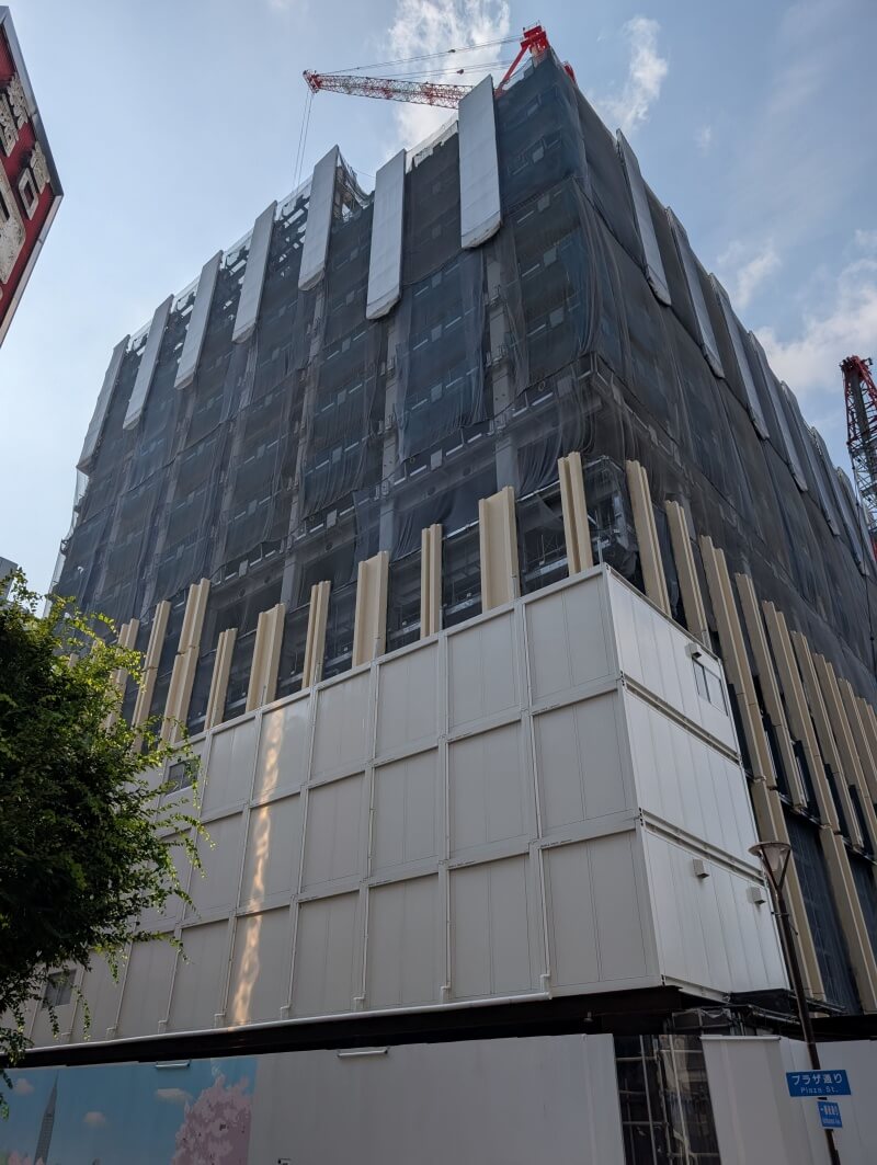 京王百貨店前付近から、施工中の建物を見た様子です。