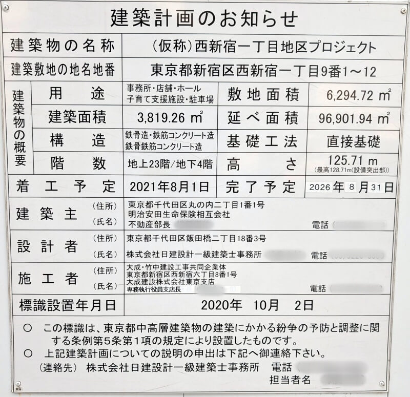 こちらは立地的にも、新宿西口駅前の、新しい顔となるような存在の建物になると思います。完成が楽しみです。