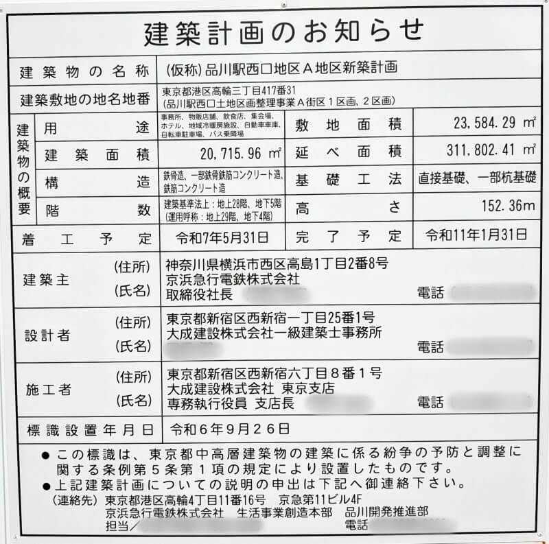 名称:(仮称)品川駅西口地区A地区新築計画