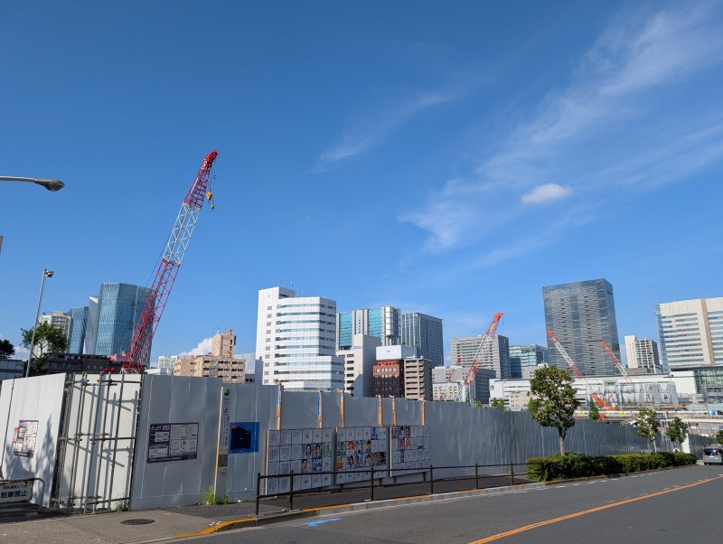 「ウィング高輪WEST」付近から、再開発の敷地を見た様子です。シンガポール料理のお店の、「シンガポール・シーフード・リパブリック品川」の建物も見えなくなっていました。