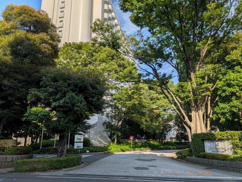 柘榴坂を登り、「グランドプリンスホテル新高輪」を見た様子です。柘榴坂沿いには事務所棟が出来る予定です。