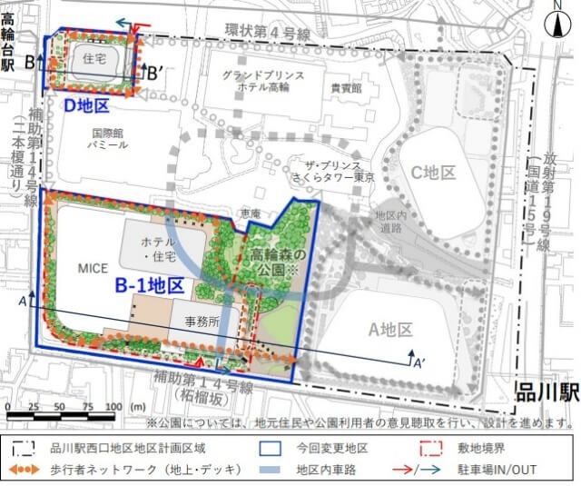先日ニュースを見て知ったのですが、「グランドプリンスホテル新高輪」跡地で建設予定の、31階約140m「品川駅西口地区 B-1地区」の様子です。「グランドプリンスホテル新高輪」は2026年度で営業終了し、その後解体工事となる予定です。