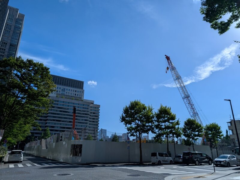 日比谷通りとの交差点から、再開発の敷地を見た様子です。