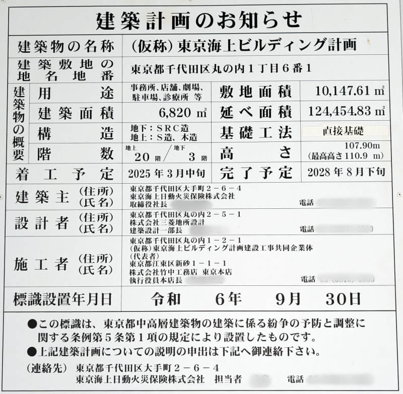 施工:(仮称)東京海上ビルディング計画建設工事共同企業体、株式会社竹中工務店