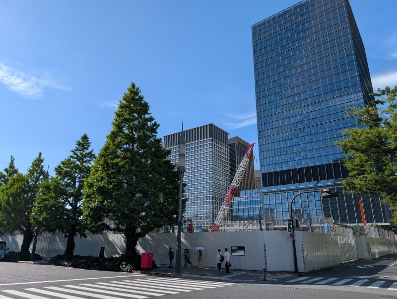 和田倉門外交番近くから、再開発の敷地を見た様子です。
