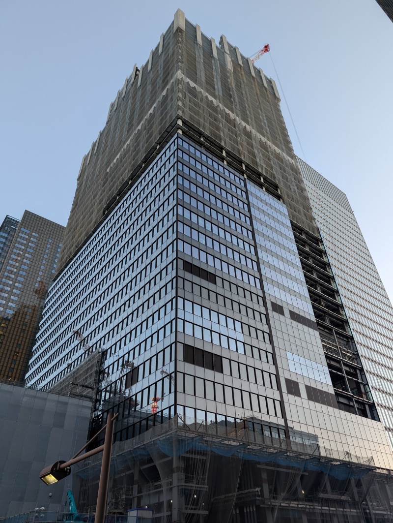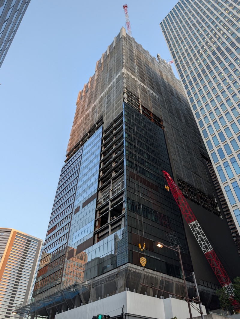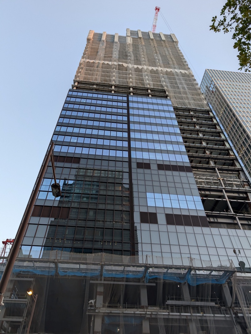 高層階を見上げた様子です。高さ的には、お隣の「日本生命浜松町クレアタワー」の高さと同じか、それより高くなっている感じがしました。