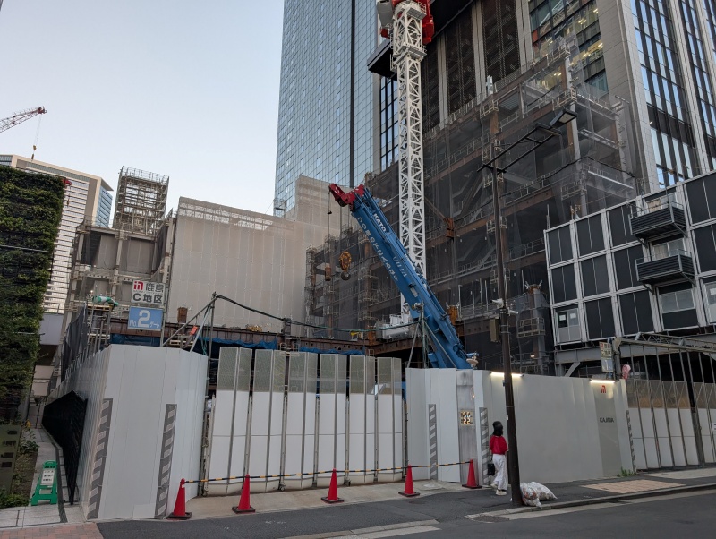 少し西側に移動して、大門交差点から、施工中の建物側を見た様子です。