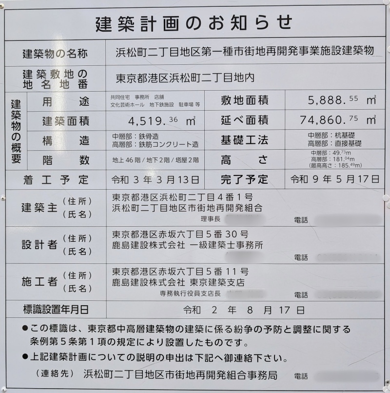 現地に掲示されていた、「ワールドタワーレジデンス」の建築計画のお知らせです。