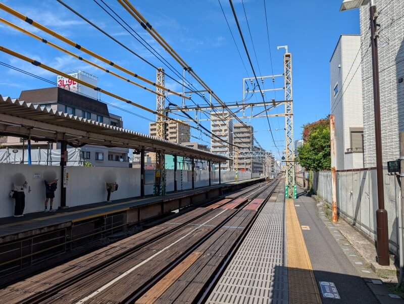 線路沿いに東側に行くと、環状七号線にたどりつけるのかと思いましたが、路地裏で行き止まりとなっていました。