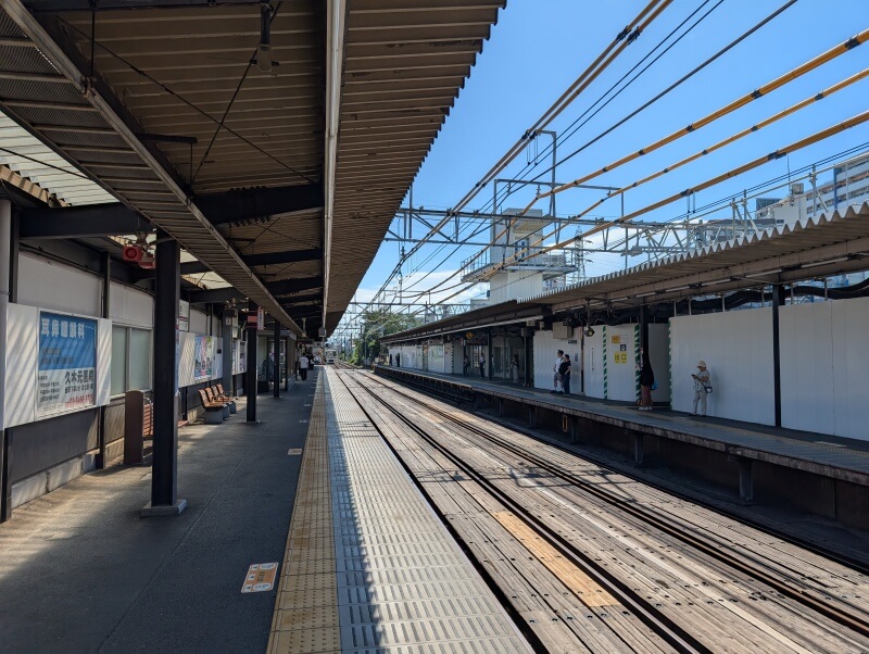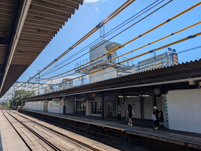 踏切から線路沿いに西側に進んで行くと、明大前駅のホームが見えてきました。