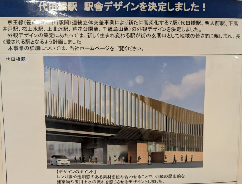 現地に掲示されていた、代田橋駅の新駅舎イメージ図です。