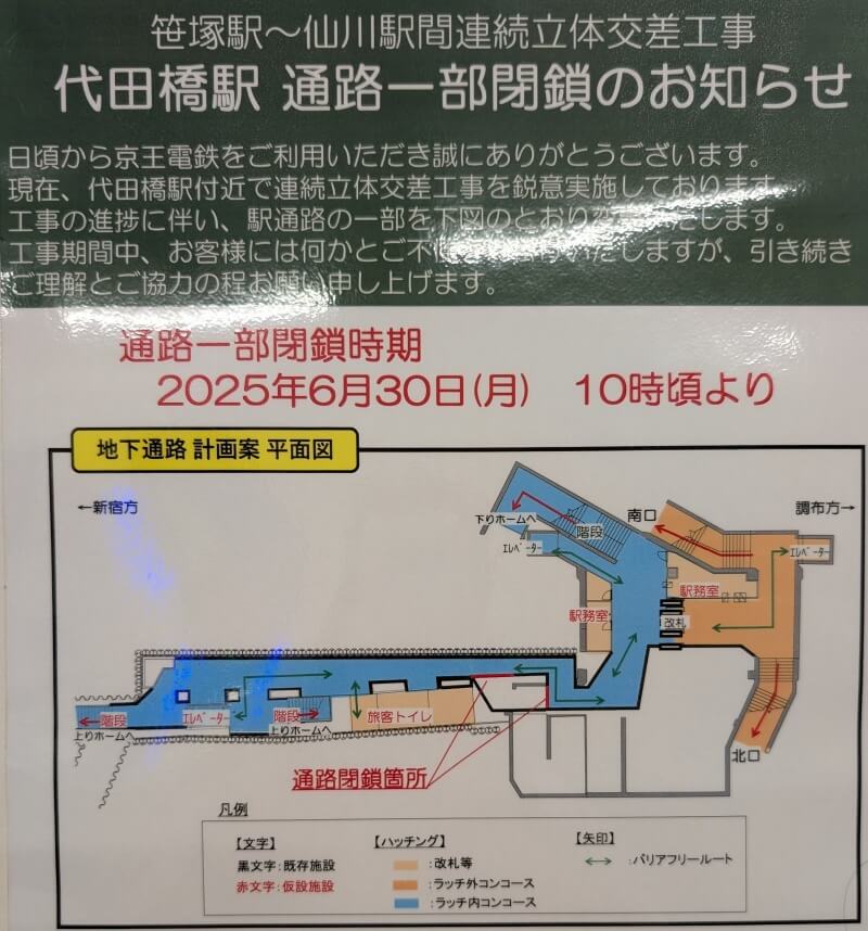 連続立体交差事業により、代田橋駅の通路が一部閉鎖となっていました。