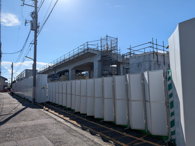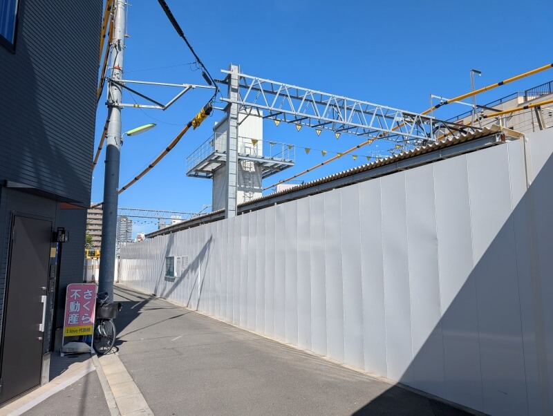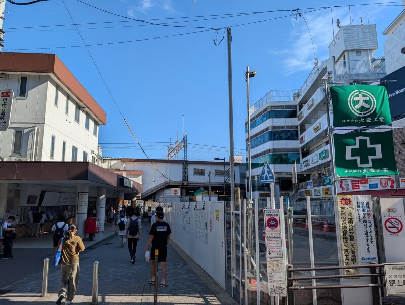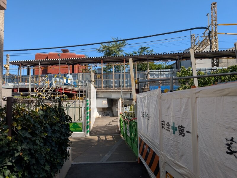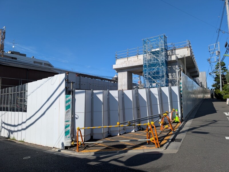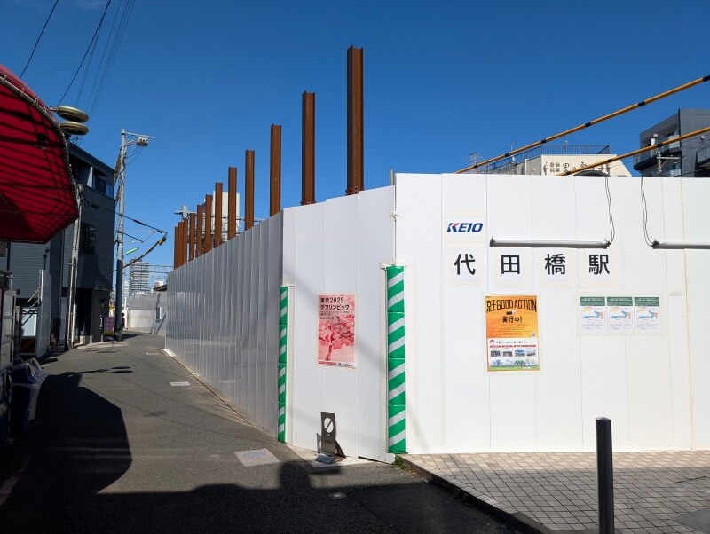 先ずは、代田橋駅に降りてみました。駅は工事用の白いフラットパネルが設置されており、高架化工事中だという事が分かりました。