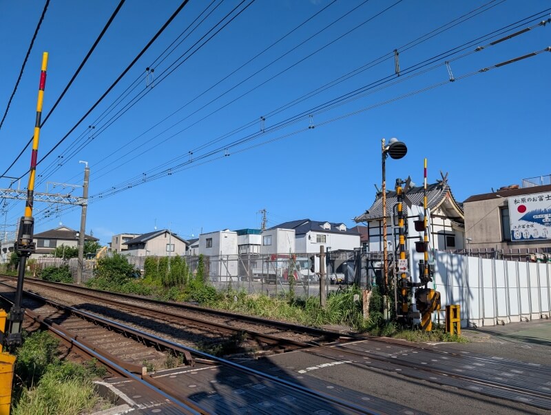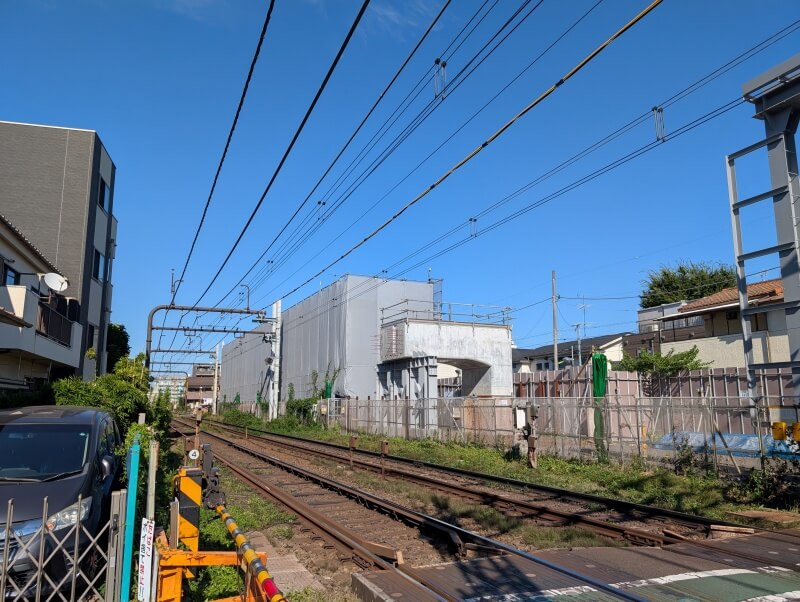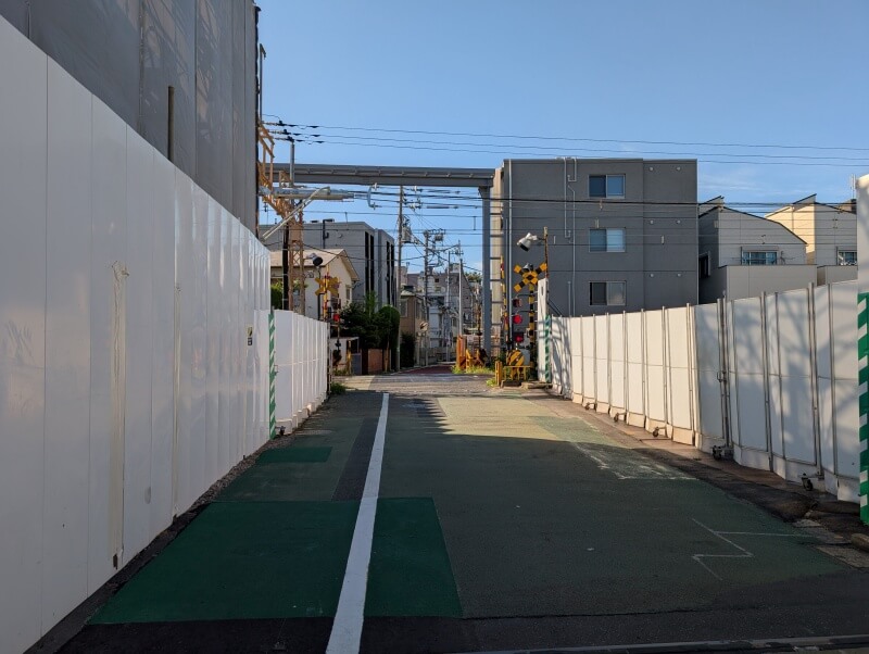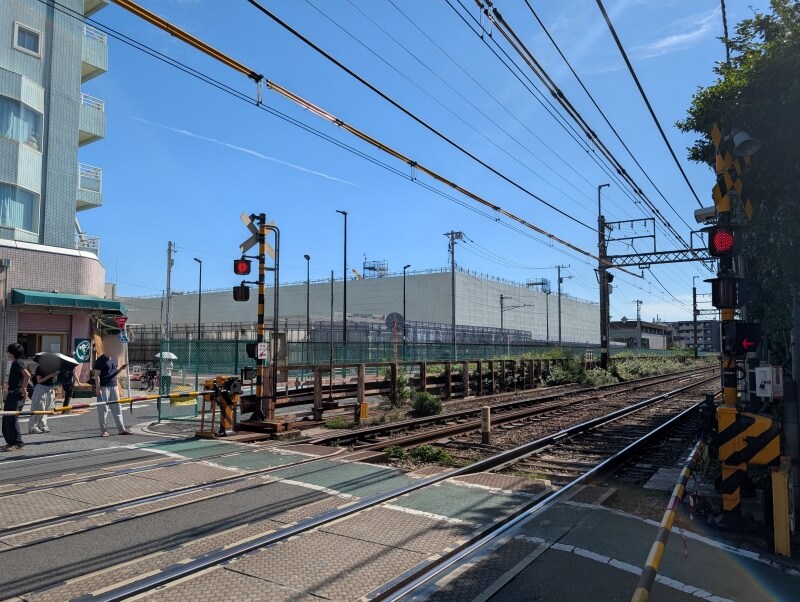 代田橋8号踏切の北側から、東側の高架橋予定地を見た様子です。まだ高架橋の姿は見えていませんが、そのうち設置されるのだと思います。