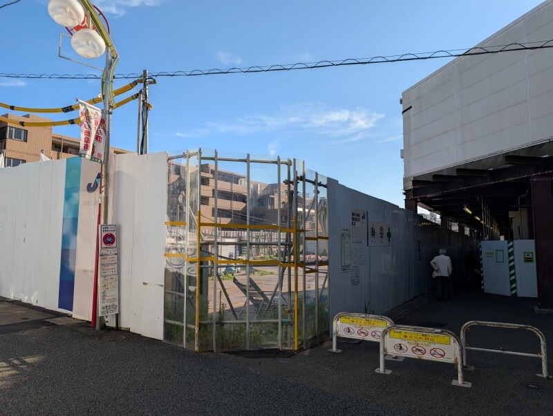 代田橋駅の北口駅前は、高架化工事が行われているので、工事用のフラットパネルが駅舎沿いに並んでいました。