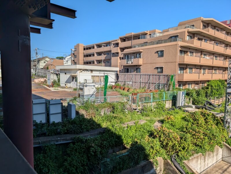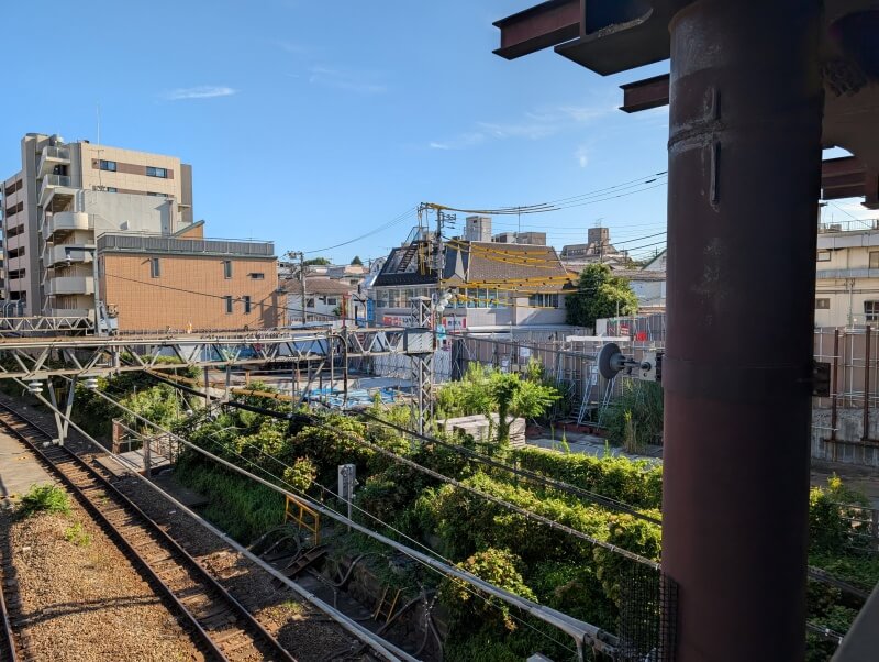 明大前駅の南側の通路から、京王井の頭線東側の代田橋駅側の敷地を見た様子です。