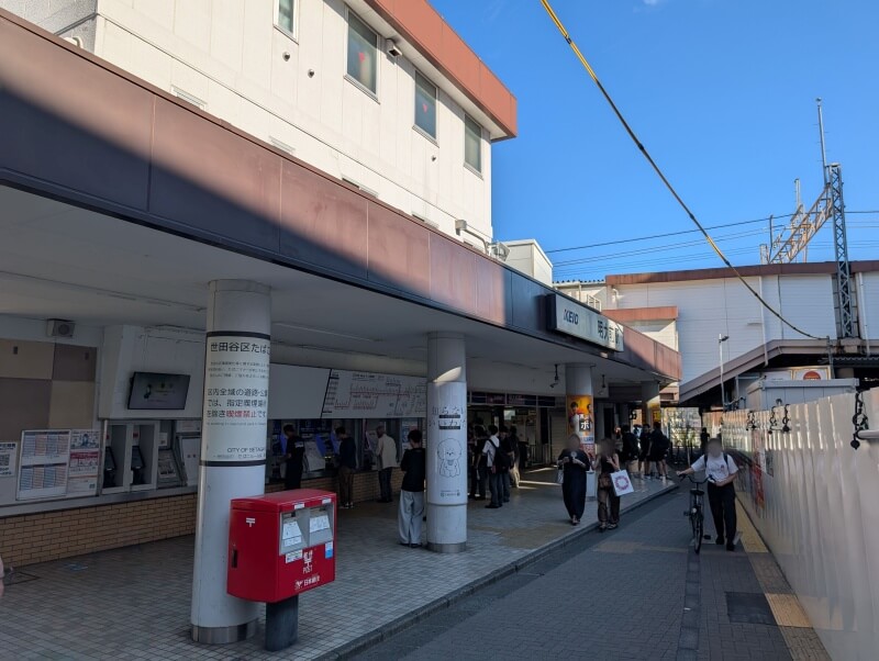 代田橋駅の北口から出て、駅の出入口付近を見た様子です。